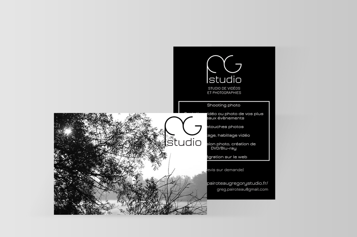 Création de la charte graphique (logo, carte de visite, flyers) d'un studio photo, vidéo situé à Strasbourg.